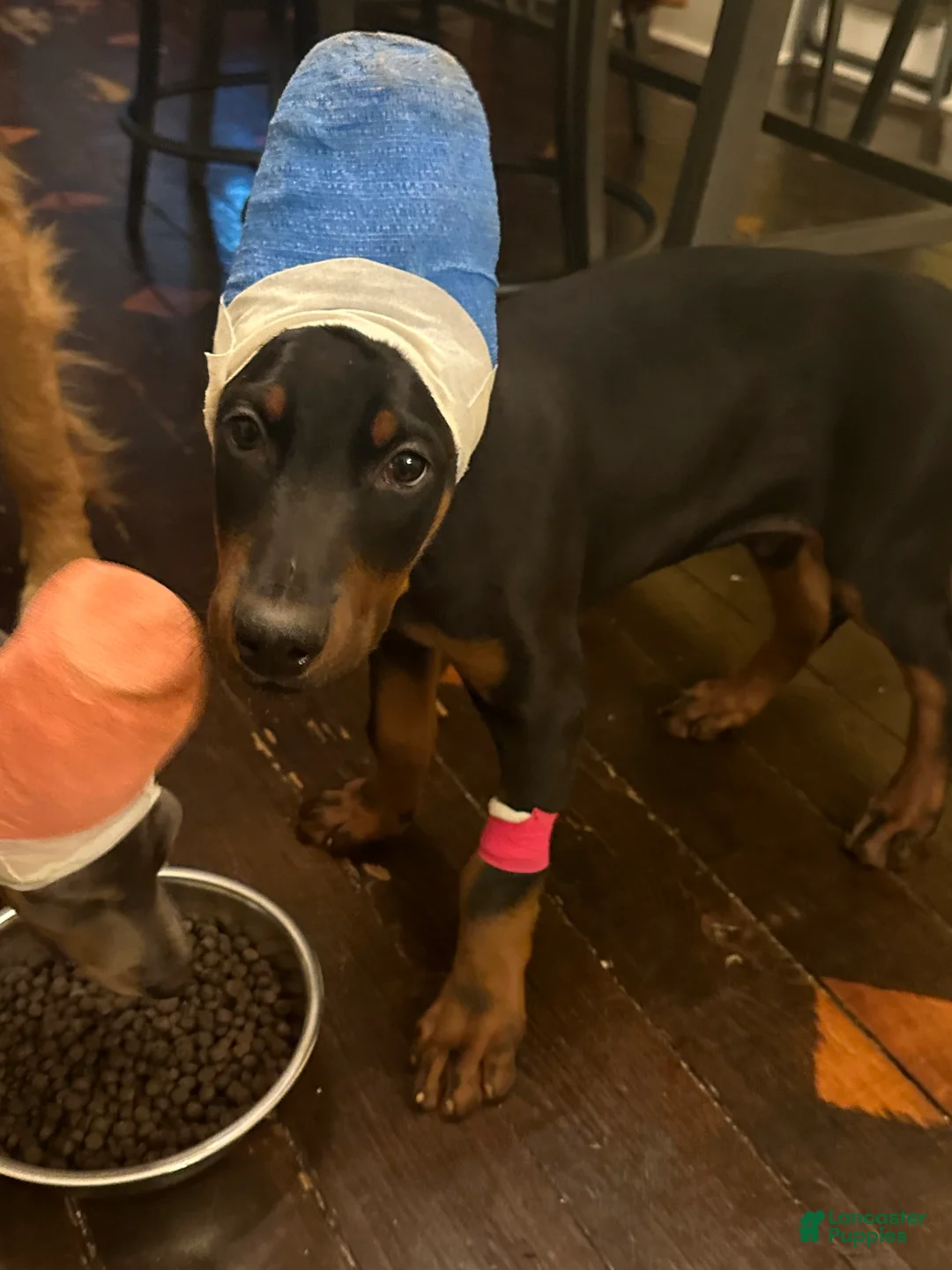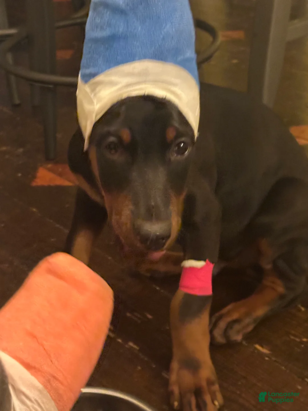 Akc Doberman Pinscher just in time before Valentines with this beautiful litter of 2. The little female is Blue. The little boy is black and tan. The pups are ready for their new home immediately. They are super sweet and have a great disposition. Everyone is up to date with vaccinations, dewormed and vetted. They have a lot of love to give. Will you be their Valentines? Akc doberman male pup ready to go to his nee home. Super sweet personality. He will be your new best friend for life. These pups are velro. Ears are being cropped.
