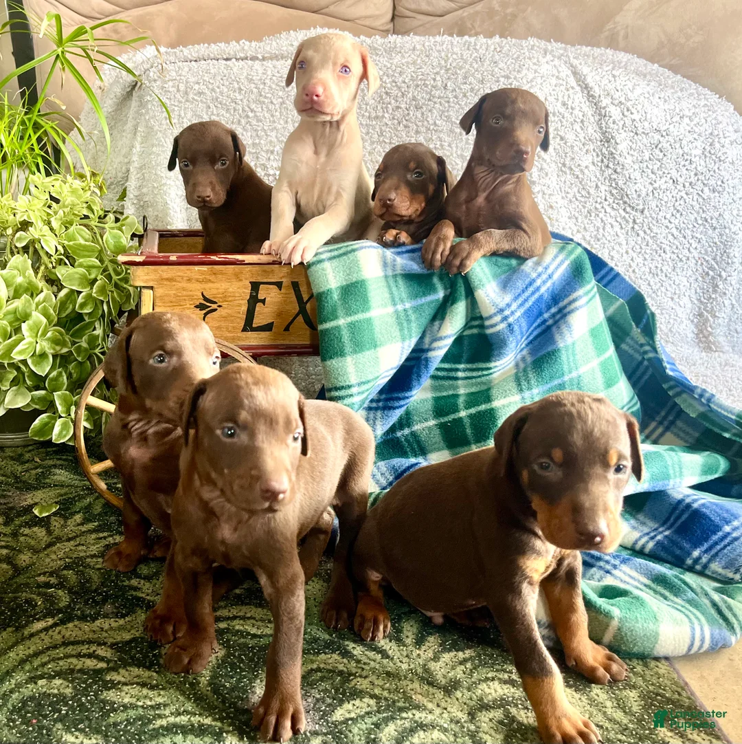 Beautiful AKC Doberman puppies. Their ears and tail will be cropped. They will be up-to-date with our shots, that checked and come with full. Akc papers called to schedule a play date today. AKC registered Doberman puppies. Both the ears and tail have been docked. Socialized by our children. Up-to-date with all shots, vet checked and dewormed. Call to schedule a play date today. We had an adorable litter of 15 puppies.